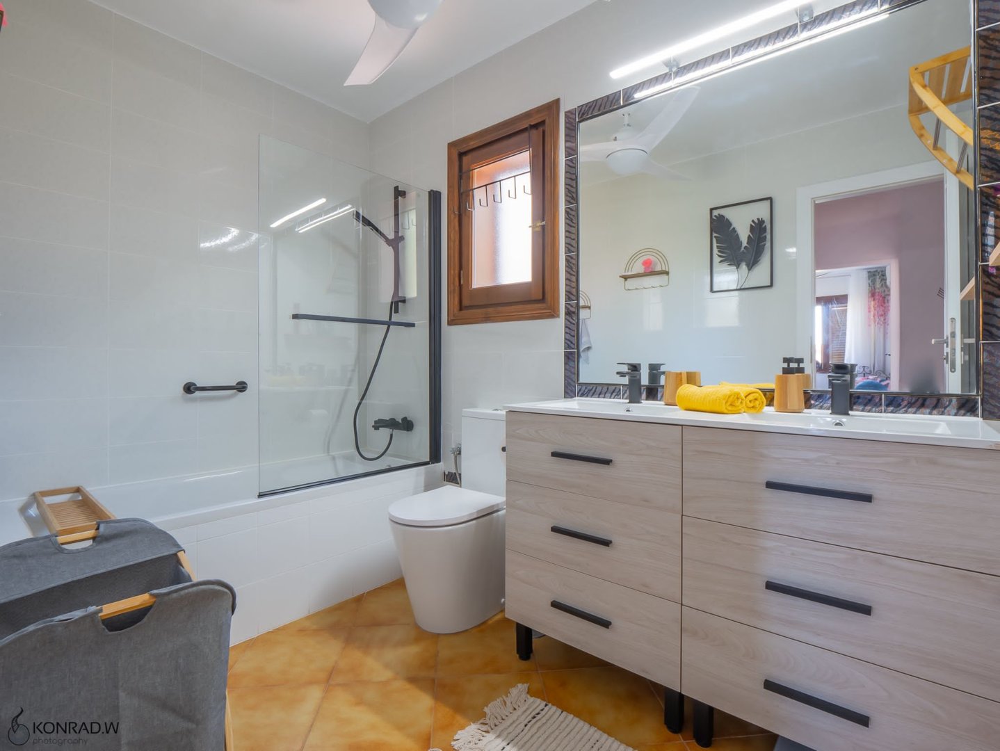 The three bedrooms are decorated in Spanish style, retaining decorative elements and comfortable furniture. The fourth bedroom with a sofa bed can be a separate studio for two people. Two bathrooms are comfortable and modern.